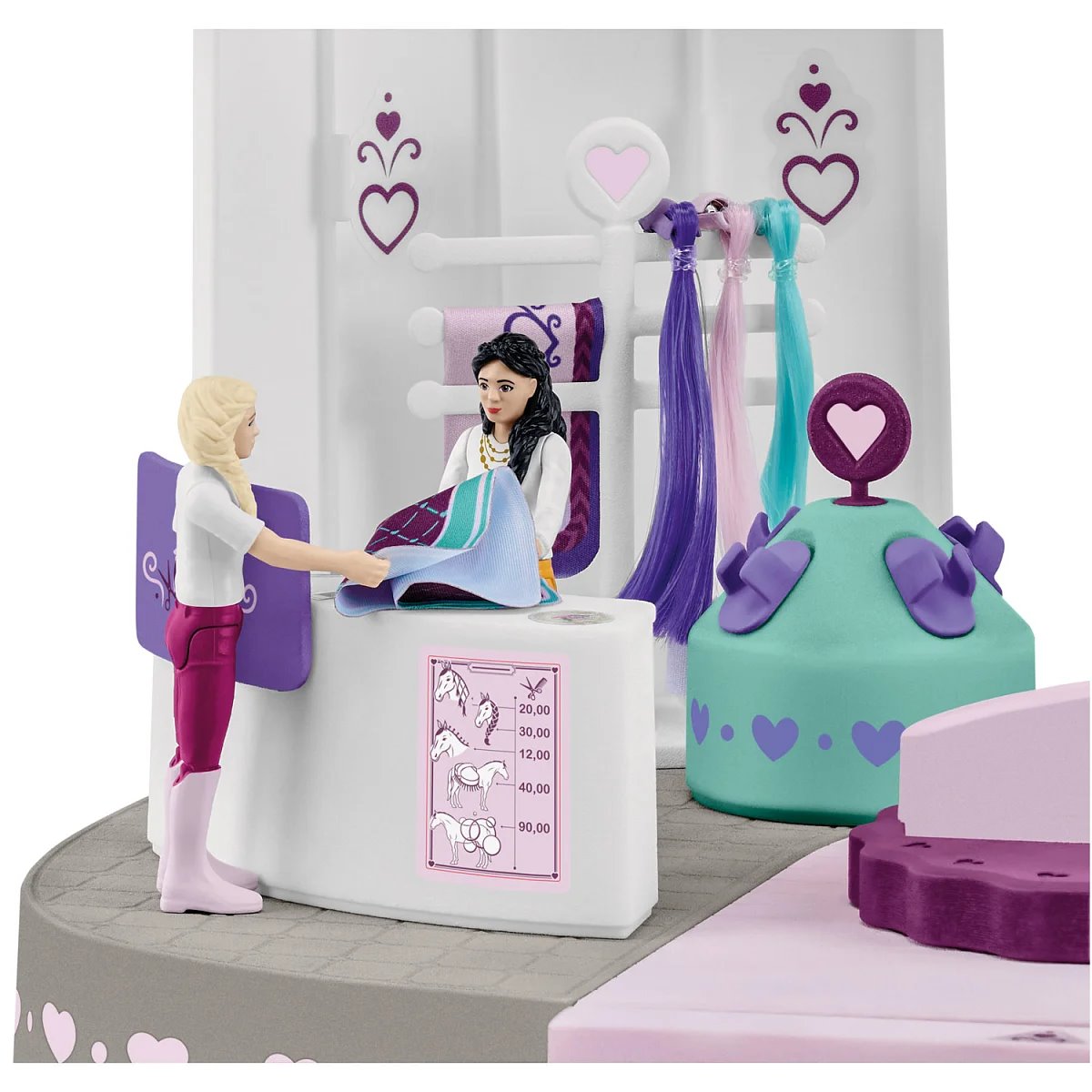 Sháníte vhodný dárek pro svého potomka? Salon krásy pro koně od značky Schleich mu určitě udělá radost. V balení najde pohyblivé postavičky paní Lopez-Mitchell a starostlivé Sofie, 2 figurky koní a dokonale vybavený salon s otočným stolem. V něm může koně hřebelcovat, zaplétat mu copy a krášlit ho pomocí různých doplňků. Díky široké škále příslušenství je hraní s touto sadou obrovská zábava. Hračka je vhodná pro děti od 4 let.