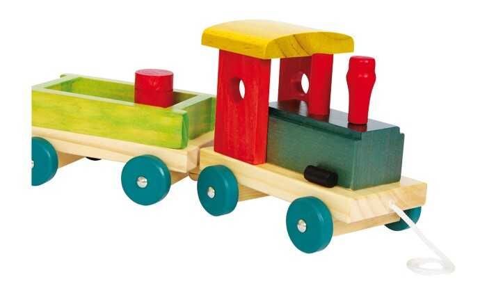 Vláček je vyrobený z kvalitního a odolného dřeva.