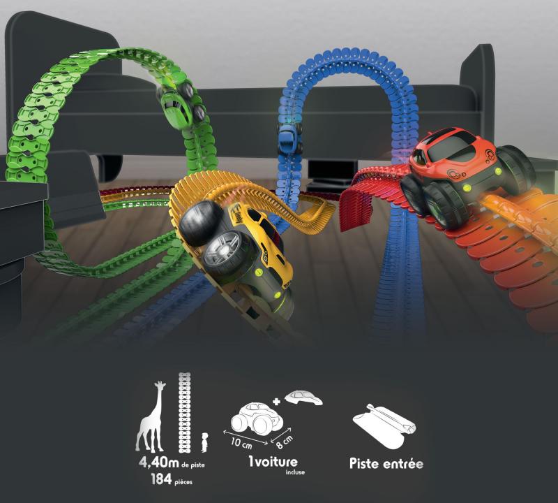Startovací sada FleXtreme nabízí vše potřebné pro sestavení dráhy. Obsahuje 184 dílů dráhy ve čtyřech barvách (každá po 46 kusech), výkonné závodní auto s vyměnitelnou kapotou (červená a modrá) a start / cíl kolejnici. Barevné dílky dráhy můžete snadno sestavit a vytvořit tak 4,4 m dlouhou závodní dráhu, která je velmi flexibilní, takže ji můžete postavit nebo zavěsit kdekoliv. Židle, postel nebo stůl nejsou překážkou.