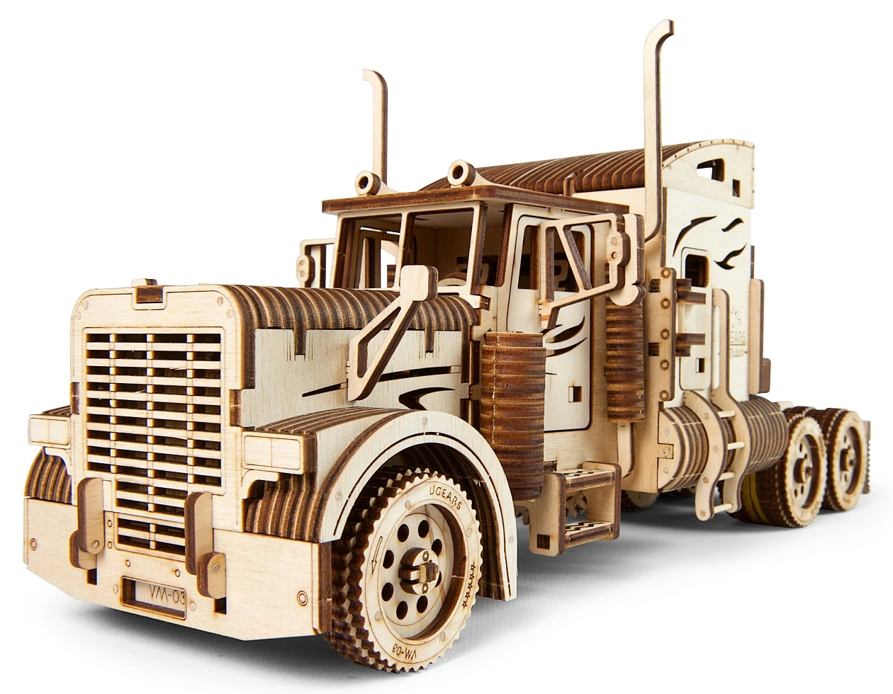 Vůz je řiditelný a díky natahovacímu mechanismu je schopen jízdy, na jedno natažení urazí i více jak 4 metry. Má funkční převodovku pro volnoběh a zpátečku. Jízdní dynamice slouží odpružení přední nápravy. Jako příslušenství je k tahači nabízený návěs, s nímž prohloubíte celkový zážitek ze stavby a provozu modelu. Uspořádejte závody s dalšími modely UGEARS! Vybaveno detailním návodem k sestavení.