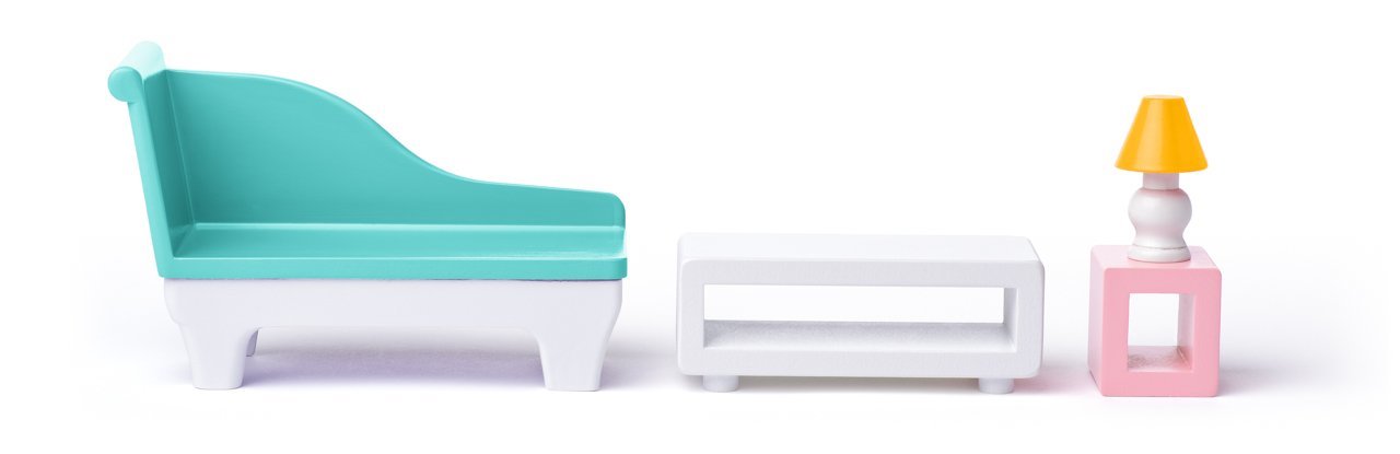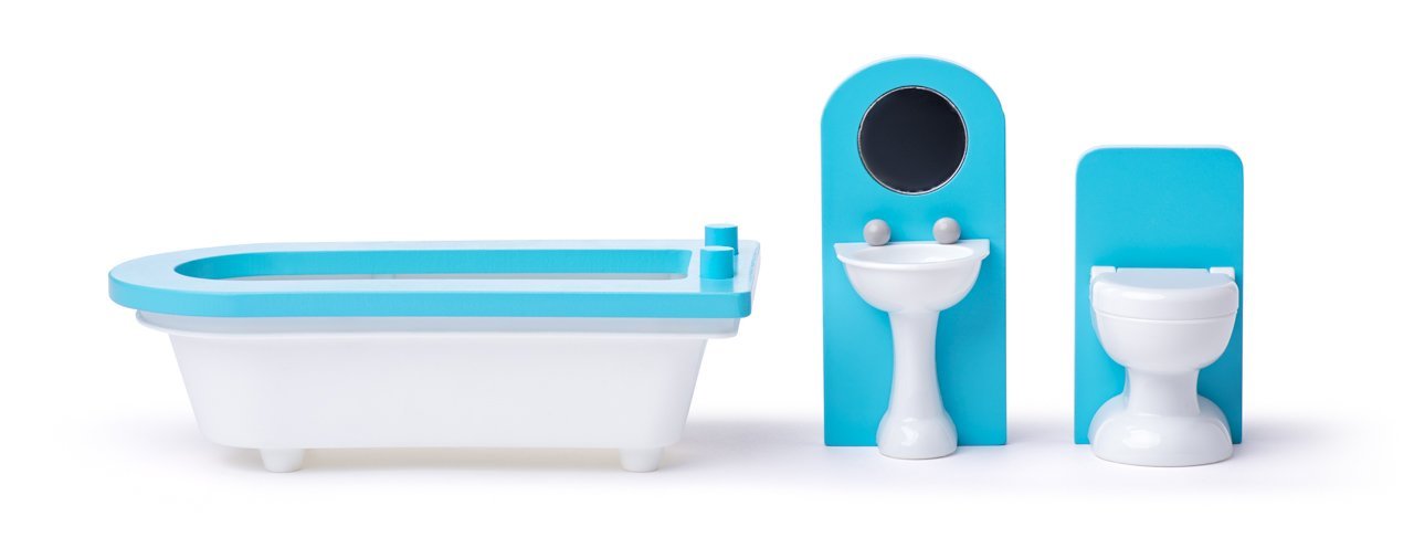 Poznámka: Veškeré příslušenství (vana, záchod, umyvadlo, židličky, stolky, pohovku, klavír, postel a lampičky) najdete v balení. Panenka není součástí výrobku.