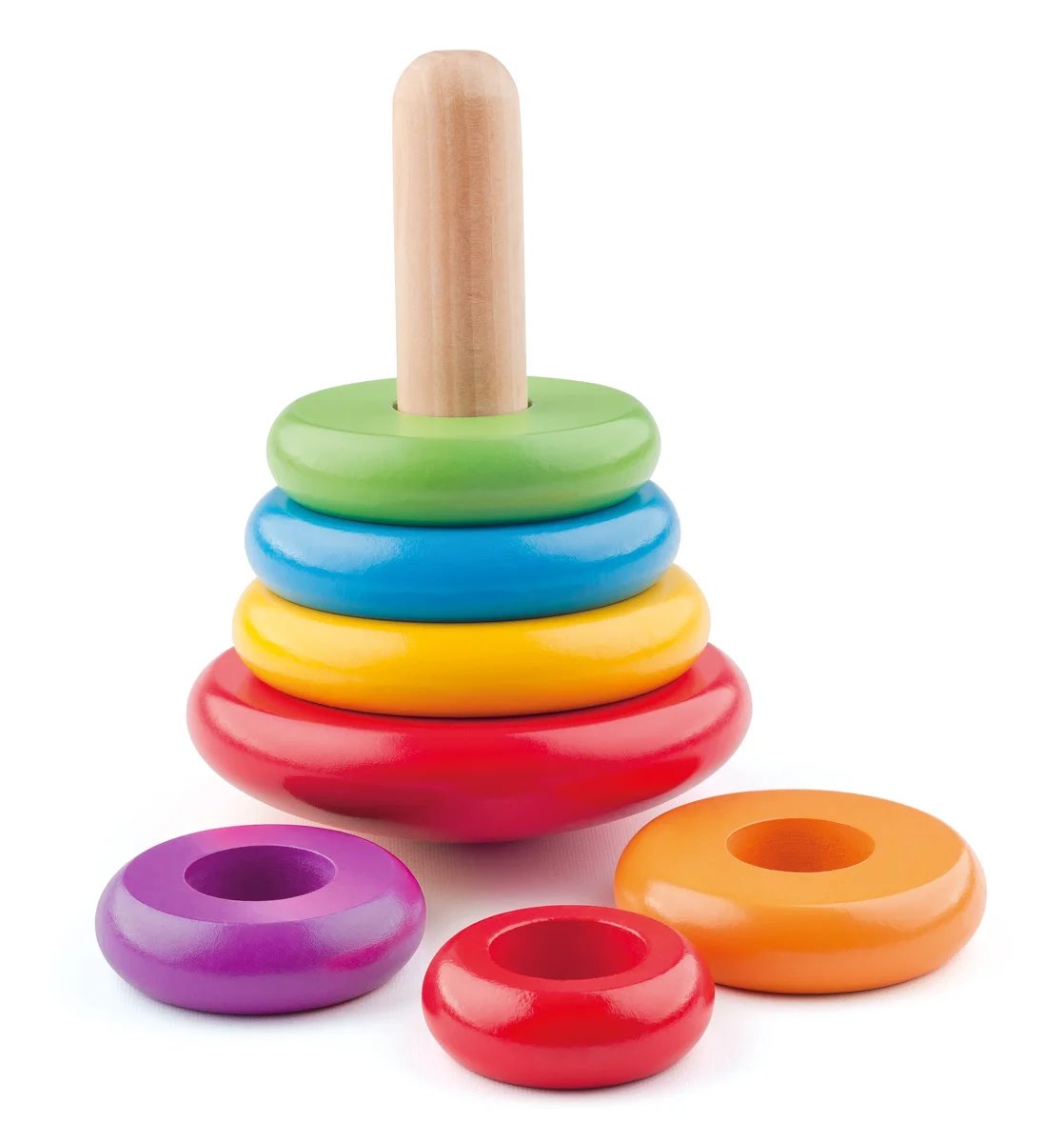kroužky. Dítě se je snaží poskládat tak, aby vytvořilo