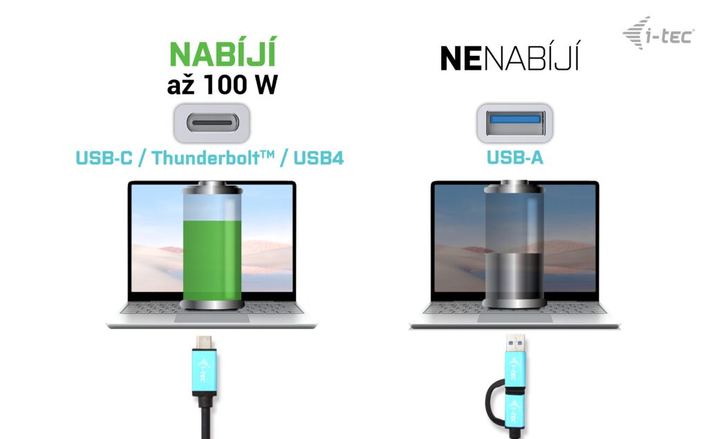běžným portům: 3.0, USB-C a Thunderbolt“ 3/4 a zároveň podporuje