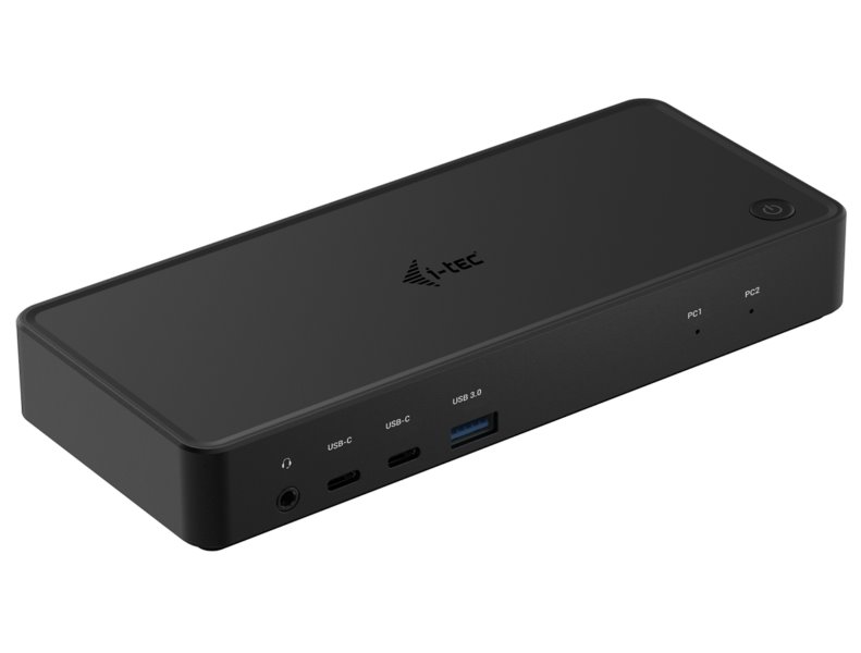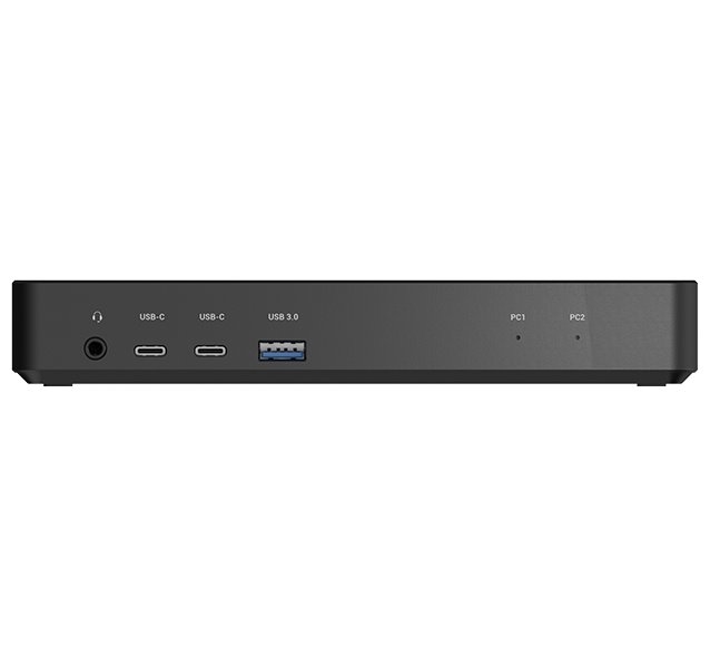 Dokovací stanice USB-C, která umožňuje připojení až dvou počítačů