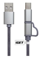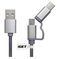 iGET G2V1 USB kabel 2V1, 1m, stříbrný