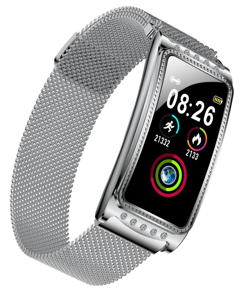 Elegantní dámské chytré hodinky nabízí 1,08" dotykový displej s rozlišením 240 x 210 bodů. Jejich základem je procesor RLC8762C. Disponují bezdrátovým připojením Bluetooth 5.0 a lze s jejich pomocí spravovat hovory, SMS nebo notifikace jiných aplikací. Kromě měření denních aktivit disponují také měřením tepové frekvence a krevního tlaku. Mezi podporované sportovní režimy patří chůze, běh, cyklistika a další. Jistě potěší voděodolnost dle certifikace IP67. Díky spárování s mobilní aplikací FlagFit 2.0, která je kompletně v českém jazyce, budete mít dokonalý přehled o vašem životním stylu. Dostatečnou výdrž zajišťuje baterie o kapacitě 105 mAh.