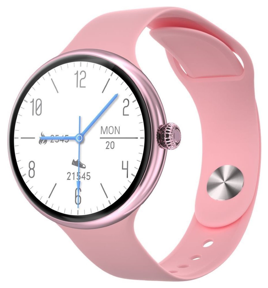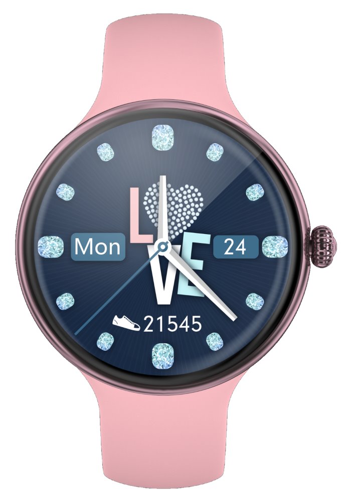 Elegantní dámské chytré hodinky nabízí 1,1" dotykový displej s rozlišením 320 x 320 bodů. Jejich základem je procesor MT2502D. Disponují bezdrátovým připojením Bluetooth 4.2 a lze s jejich pomocí spravovat hovory, SMS nebo notifikace jiných aplikací. Kromě měření denních aktivit disponují také měřením tepové frekvence a krevního tlaku. Mezi podporované sportovní režimy patří chůze, běh, cyklistika a další. Jistě potěší voděodolnost dle certifikace IP67. Díky spárování s mobilní aplikací IMFit, která je kompletně v českém jazyce, budete mít dokonalý přehled o vašem životním stylu. K dispozici je také interní paměť s kapacitou 4 GB, která slouží pro ukládání hudby. Dostatečnou výdrž zajišťuje baterie o kapacitě 300 mAh.