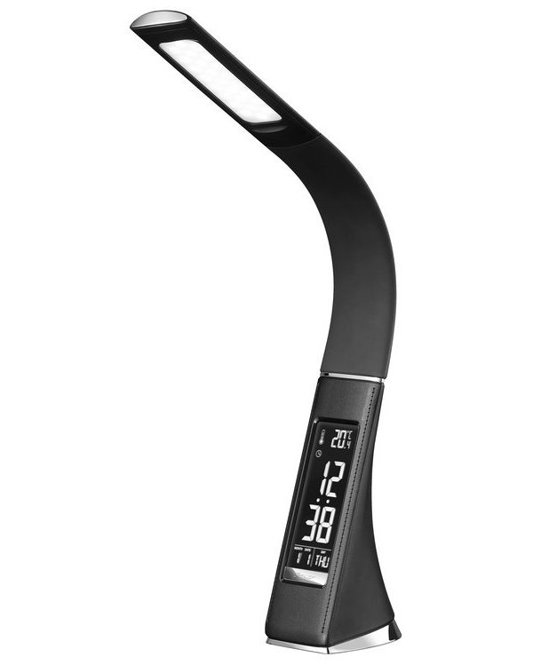 Moderní LED stolní lampička s ohebným ramenem, dotykovým ovládáním jasu a informačním LCD panelem, který zobrazuje údaje o aktuálním času, datu a teplotě. LCD je možné úplně vypnout. Napájení je realizováno skrze přiložený adaptér nebo přímo z USB portu počítače či powerbanky. Součástí balení je USB kabel o délce 120 cm.