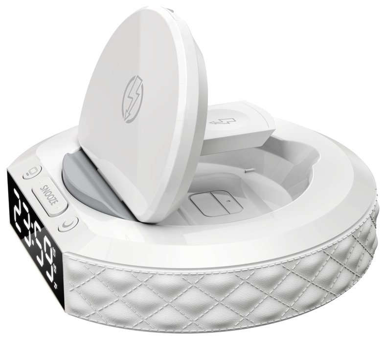 Multifunkční budík s velkým displejem pro zobrazení aktuálního času, třemi úrovněmi jasu i možností displej zcela vypnout pro ničím nerušený spánek. Samozřejmostí je možnost nastavení dvou časů budíku i funkce odložení. Předností je navíc integrovaná bezdrátová Qi nabíječka pro dobíjení kompatibilních mobilních zařízení jako jsou telefony, hodinky a sluchátka výkonem až 10 W. Napájení je realizováno skrze USB-C port. Pro zálohování času v případě výpadku elektrické sítě je v zařízení vyměnitelná baterie CR2032.
