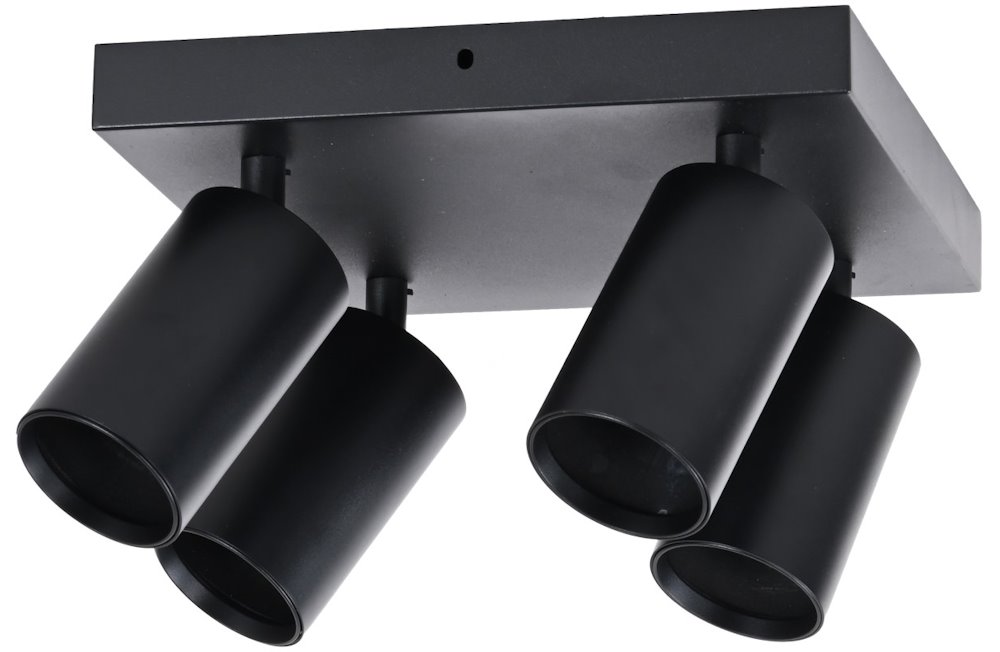 Série bodových svítidel PUNTO představuje kvalitní kovová svítidla v elegantním, matně černém provedení, která jsou ideální volbou pro funkční osvětlení současných interiérů. Svítidla mohou být instalována jako nástěnná i stropní, což zvyšuje jejich flexibilitu a univerzálnost. Čtyři směrové hlavy jsou umístěny na základně o velikosti 22 × 22 cm a díky pohyblivým kloubům lze světelné pruhy zacílit přesně tam, kde je potřeba. Osazeno je čtyřmi paticemi GU10 pro instalaci žárovek o max. příkonu 4× 9 W. Hlavu svítidla lze pro snadnější instalaci žárovky odšroubovat. Součástí balení je sada zlatých kroužků, kterými lze upravit vzhled svítidla na černozlatý.