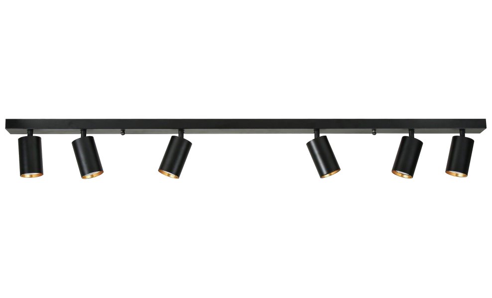Série bodových svítidel PUNTO představuje kvalitní kovová svítidla v elegantním, matně černém provedení, která jsou ideální volbou pro funkční osvětlení současných interiérů. Svítidla mohou být instalována jako nástěnná i stropní, což zvyšuje jejich flexibilitu a univerzálnost. Šest směrových hlav je nerovnoměrně rozloženo na 119 cm dlouhé základně a díky pohyblivým kloubům lze světelné pruhy zacílit přesně tam, kde je potřeba. Osazeno je šesti paticemi GU10 pro instalaci žárovek o max. příkonu 6× 9 W. Hlavu svítidla lze pro snadnější instalaci žárovky odšroubovat. Součástí balení je sada zlatých kroužků, kterými lze upravit vzhled svítidla na černozlatý.