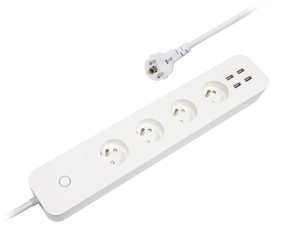 Kompaktní prodlužovací přívod se čtyřmi Schuko zástrčkami a čtyřmi porty USB 2.0 s podporou bezdrátového Wi-Fi rozhraní a hlasového ovládání Amazon Alexa a Google Assistant. Lze s ním tedy připojit nejen elektrické spotřebiče, ale současně nabíjet až čtyři mobilní zařízení z portu USB do max. nabíjecího proudu 2,4 A. Samozřejmostí je také ochrana proti přetížení a zkratu.