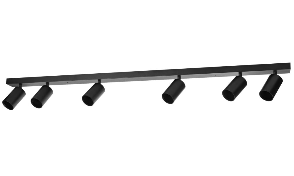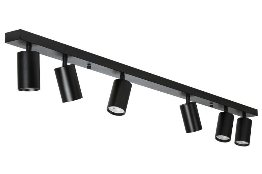 Série bodových svítidel PUNTO představuje kvalitní kovová svítidla v elegantním, matně černém provedení, která jsou ideální volbou pro funkční osvětlení současných interiérů. Svítidla mohou být instalována jako nástěnná i stropní, což zvyšuje jejich flexibilitu a univerzálnost. Šest směrových hlav je nerovnoměrně rozloženo na 119 cm dlouhé základně a díky pohyblivým kloubům lze světelné pruhy zacílit přesně tam, kde je potřeba. Osazeno je šesti paticemi GU10 pro instalaci žárovek o max. příkonu 6× 9 W. Hlavu svítidla lze pro snadnější instalaci žárovky odšroubovat.
