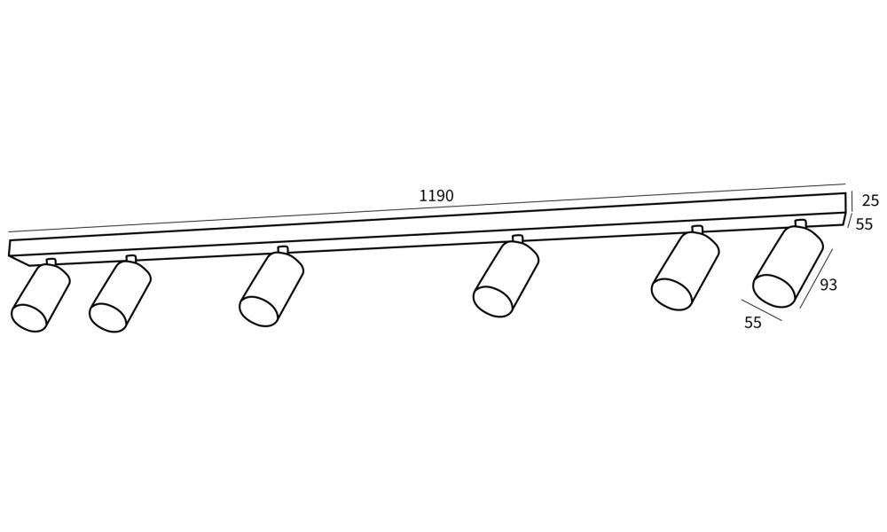 Rozměry základny: 1190 × 55 × 25 mm