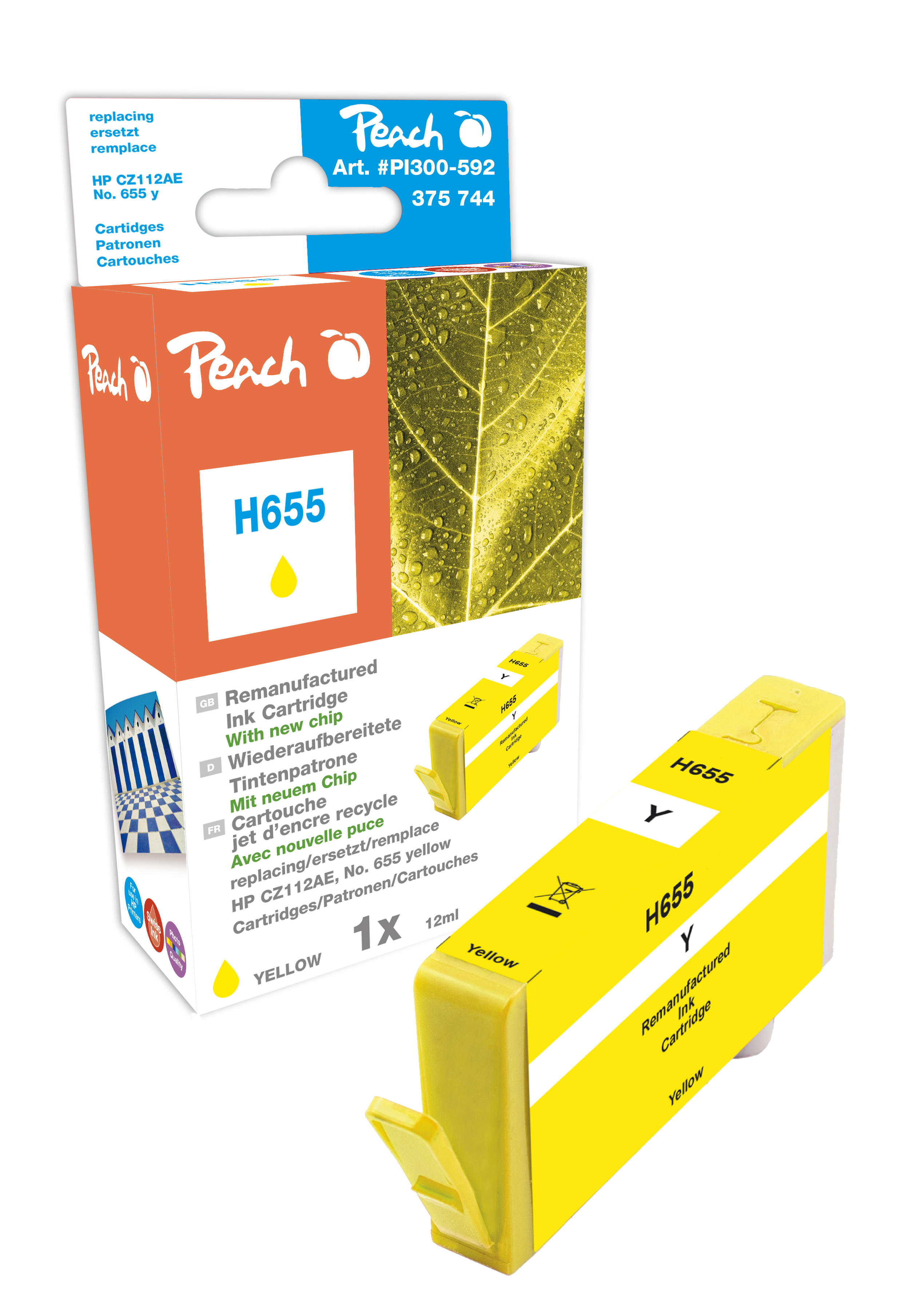Kompatibilní inkoustová náplň Peachnahrazující originálníCZ112AE, No. 655,ale s vyšším obsahem. Kompatibilní náplň obsahuje cca 138% obsahu