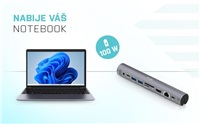 Integrovaná přenosná kovová dokovací stanice je vybavena HDMI portem, 3 USB porty (2x USB-A a jedním univerzálním portem USB-C který dokáže jak přenášet data, tak i nabíjet dokovací stanici a jejím prostřednictvím i váš notebook), Gigabitovým LAN adaptérem, kombinovaným audio/mic portem a rovněž i SD/microSD sloty, což potěší zejména milovníky fotografií a videa.