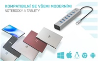USB-C, USB4 a ThunderboltTM 3 či 4 jsou na dnešních noteboocích a tabletech čím dál populárnější. Společně s jejich čím dál širším využívání ubývá na těle notebooků množství USB portů. A pokud potřebujete připojit ke svému zařízení příslušenství, na které již dostatek portů nemáte, můžete využít tohoto malého, ale šikovného rozbočovače, který navíc podporuje aktivní nabíjení.