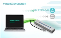 S tímto hubem získáte dalších 7 USB 3.0 portů (až 5 Gbps). Připojte si externí klávesnici a myš, přenášejte data nebo filmy z USB flash disku rychlostí až 5 Gbps nebo nabíjejte svá mobilní zařízení nabíjejte, až rychlostí 7.5W.