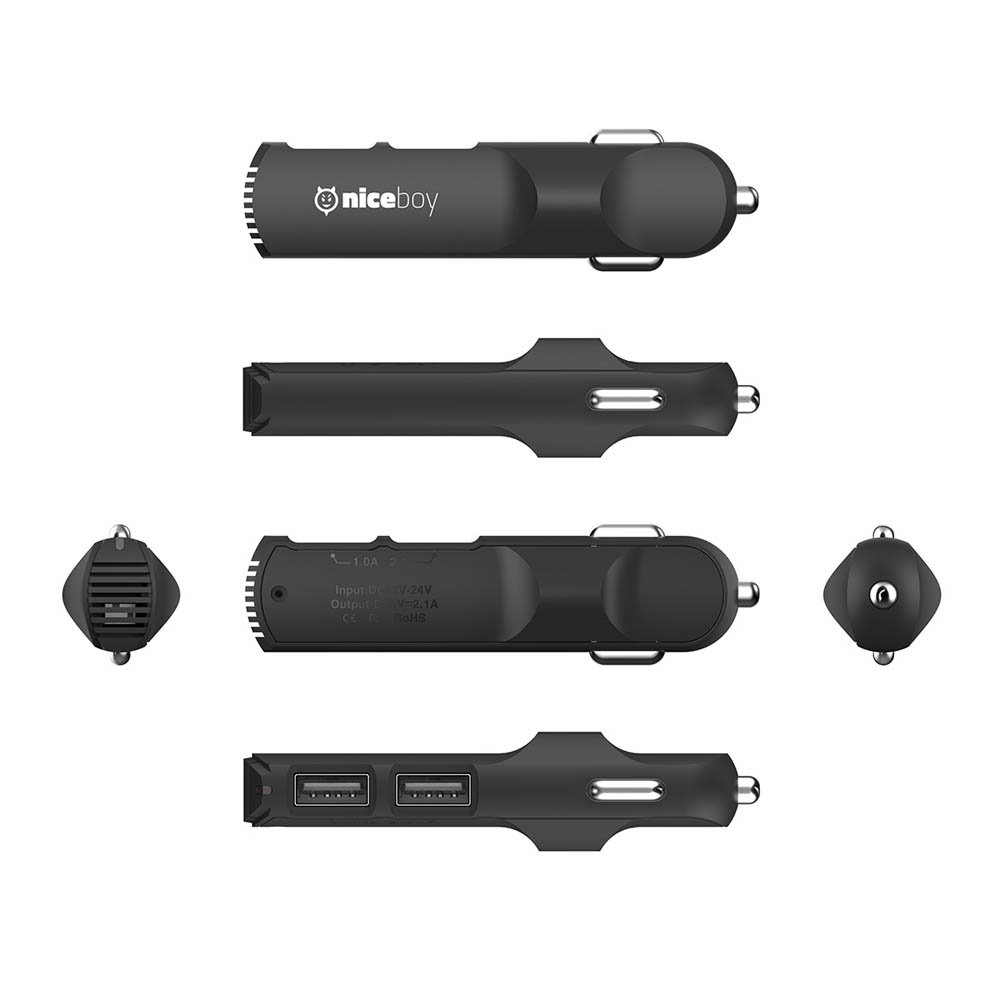 Díky svým kompaktním rozměrům - které řadí autokameru k nejmenším na trhu - Niceboy PILOT X nijak neomezuje zorné pole řidiče a magnetický držák dělá z manipulace s autokamerou opravdovou radost. Každodenní používání je velmi pohodlné, protože držák, do kterého vede napájecí kabel o délce 3 metry (je součástí balení), zůstane ve voze napevno a manipulovat můžete jen se samotnou kamerou či GPS modulem. Tu z držáku jednoduše odpojíte a následně opět připojíte. Součástí balení je také autonabíječka do zapalování se dvěma USB výstupy (výstupní proud 1A a 2,4A), jedním pro autokameru a druhý například pro mobilní telefon. Díky dvěma výstupům je tedy možné například používat autokameru a současně nabíjet telefon.