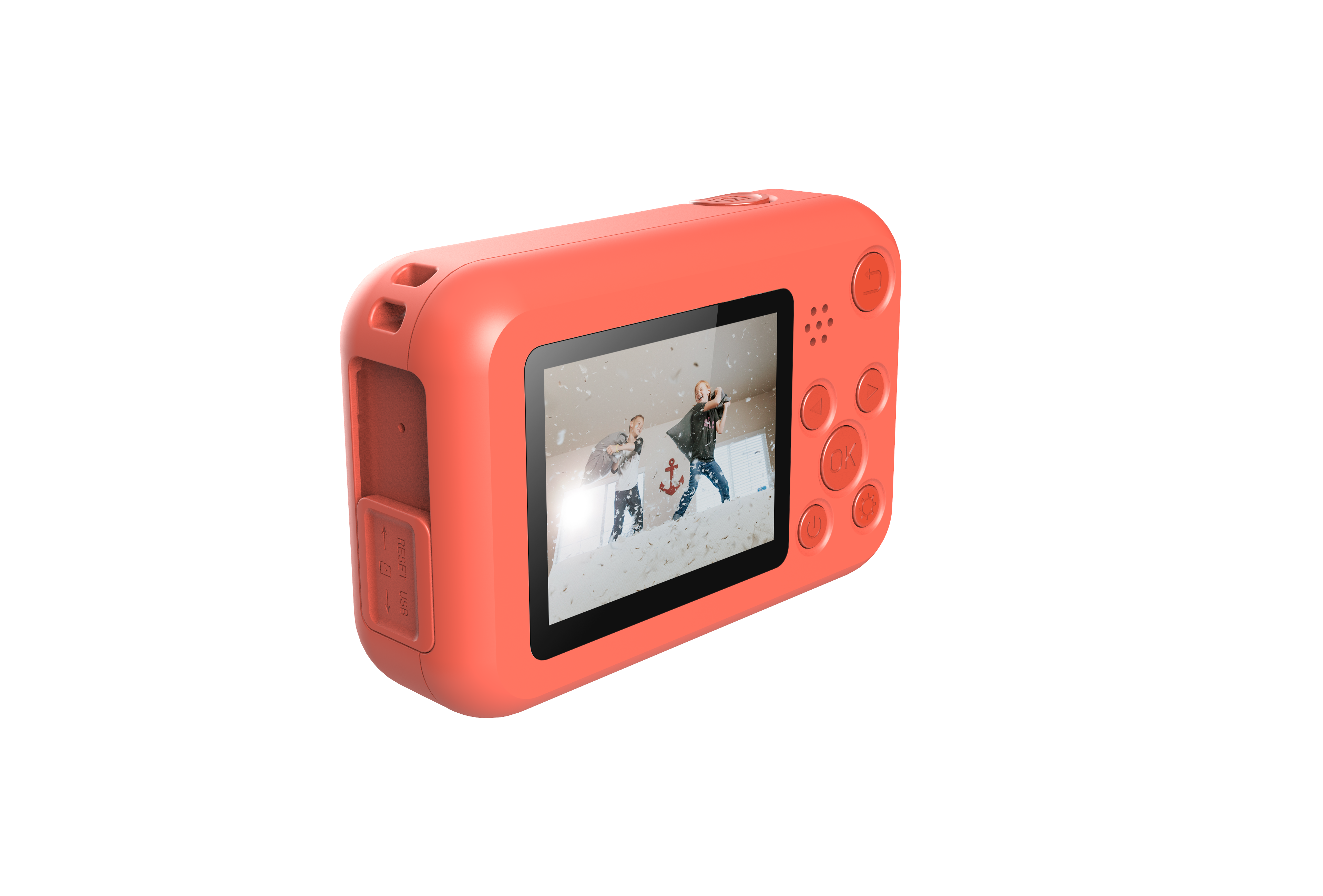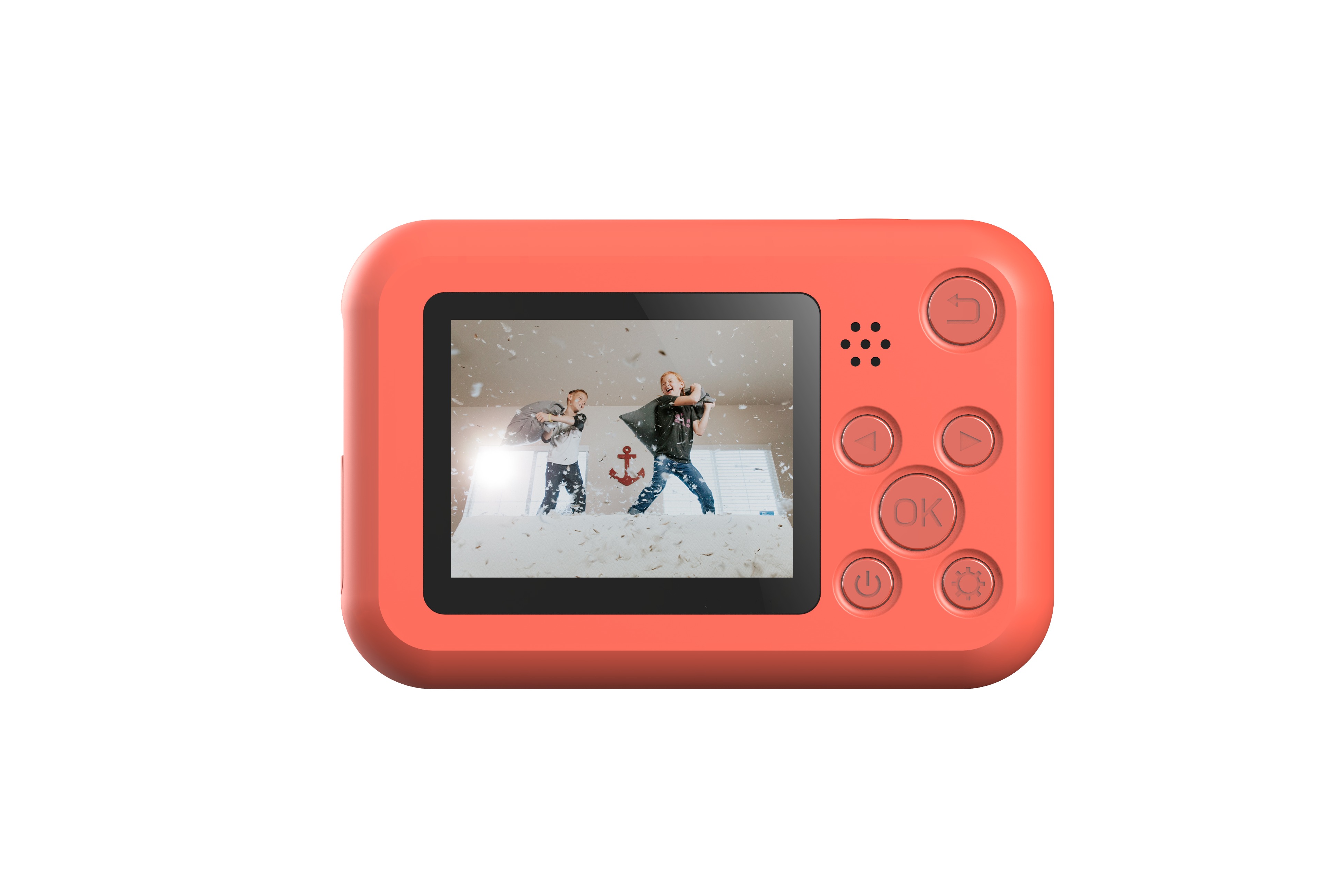 Díky funkci samospouště mohou děti nastavit fotoaparát tak, aby byl snímek pořízen se zpožděním a na fotografii byly i se svými kamarády.
