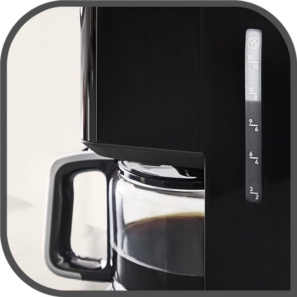 Kávovar vás potěší, ať už si chcete dopřát více než jen jeden šálek, nebo chcete bez delšího čekání připravit kávu i pro své blízké. S objemem 1,25 l připravíte najednou až 15 šálků lahodné kávy.