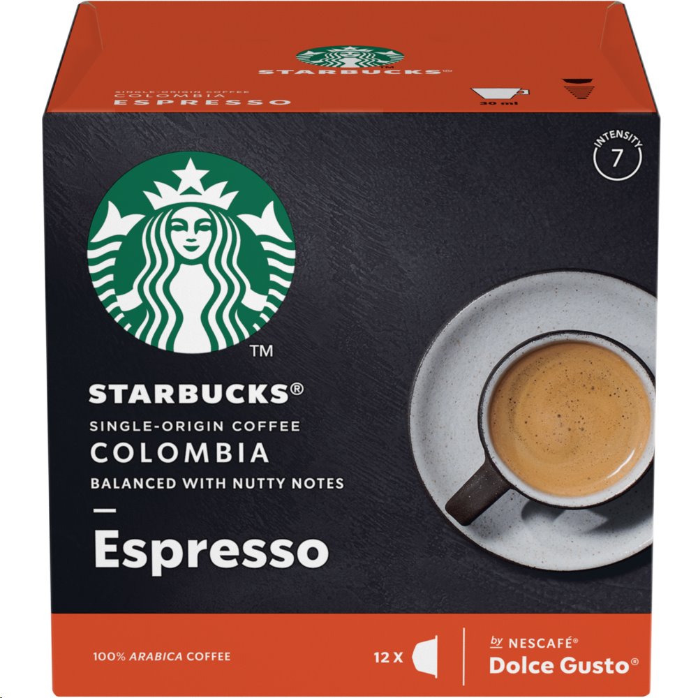 Milujete kávu z obchodního řetězce Starbucks? Nechcete opustit domov, ale máte chuť na některý z kávových nápojů z jejich nabídky? Chybí ve vašem městě kavárna Starbucks? Káva v kapslích Nestlé / Starbucks Medium Espresso Colombia připomíná dravou kolumbijskou krajinu, jež protínají prašné stezky vedoucí okolo skal skrze hustý prales, v jejichž cíli však čeká sladká odměna v podobě těch nejlepších kávových farem. Stejně tak vaše středně pražená Colombia vyniká plnou a vyváženou chutí, kterou doplňují jemné oříškové a květinové tóny.