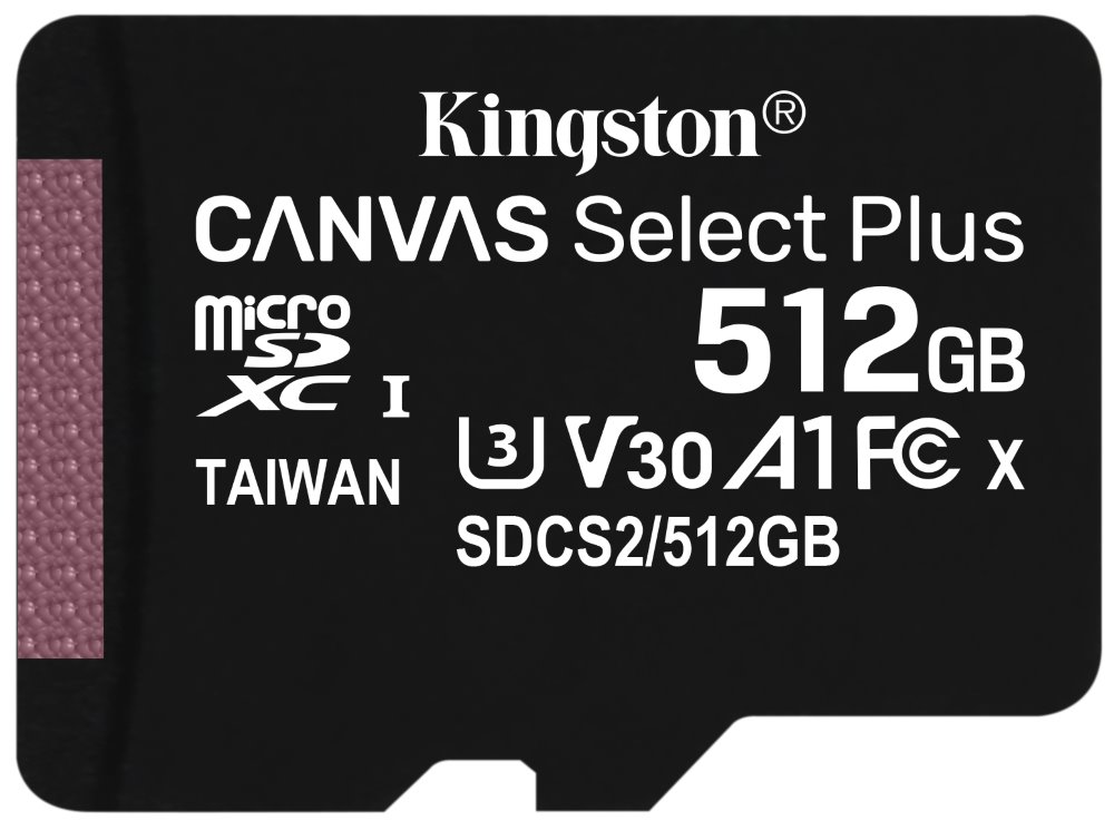 Paměťová karta formátu Micro SDXC nabízí kapacitu 512 GB. Rychlost čtení je až 100 MB/s a rychlost zápisu až 85 MB/s.