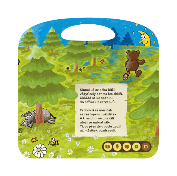 Dětská mluvící kniha Básničky z lesa z edice Kouzelné čtení zabaví děti již od 3 let. S Elektronickou Albi tužkou si vyslechnou celkem 12 navazujících básniček o zvířátkách z lesa, monology zvířátek i jejich příběh. V knize nechybí zábavný kvíz, ve kterém budou děti hledat jednotlivá zvířátka, rostliny a další. Kniha Básničky z lesa obsahuje přes 500 zvuků a textů. Kouzelné čtení je unikátní výukový systém, který vám přináší spoustu informací a zábavy. Stačí, když se lehce dotknete tužkou obrázku nebo textu, ozve se příslušná informace, zvuk nebo hudba.