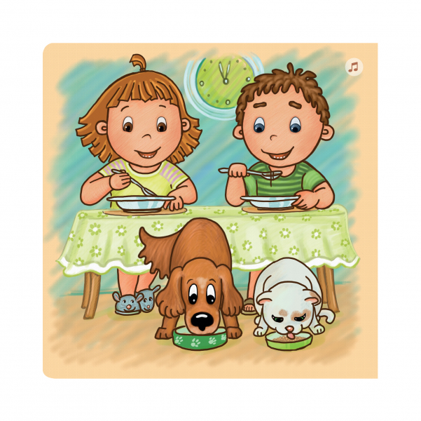Interaktivní naučná minikniha Denní činnosti z edice Kouzelné čtení provede děti jedním dnem sourozenců Honzíka a Barborky. Vstanou s nimi, vyčistí si zoubky, dají si něco dobrého k obědu, zahrají si spolu a to všechno spolu s Honzíkovým pejskem a Barborčinou kočičkou. Všechny činnosti v knize doprovází veselá písnička. V knize nechybí dialogy, říkanky a samozřejmě ani jednoduché zábavné kvízy. Kniha Denní činnosti obsahuje přes 400 zvuků a textů. Kouzelné čtení je unikátní výukový systém, který vám přináší spoustu informací a zábavy. Stačí, když se lehce dotknete tužkou obrázku nebo textu, ozve se příslušná informace, zvuk nebo hudba.