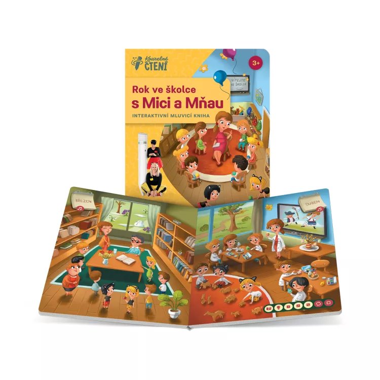 Kniha Rok ve školce s Mici a Mňau zobrazuje 10 měsíců zábavy a poučení ve školce skrze zábavné aktivity i běžné činnosti, které děti ve školkovém prostředí zažívají. Interaktivní mluvící kniha Rok ve školce s Mici a Mňau je vhodná pro děti od 3 let. Kniha obsahuje přes 1600 zvukových stop. Divadlo Mici a Mňau je občanské sdružení, které vzniklo na podporu dětí s genetickým onemocněním cystická fibróza. Snaží se hravou formou šířit povědomí o této nemoci a poukazovat na potřeby dětí, které jí trpí. Koupí této knihy pomůžete i vy.