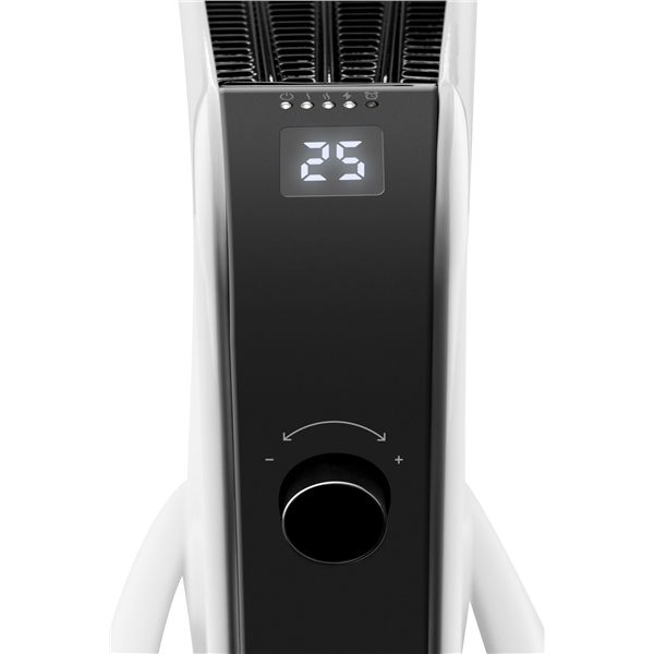 Konvektor je vybavený prostorovým termostatem s plynulou regulací a bezpečnostní tepelnou pojistkou. Dle potřeby můžete zvolit ze 3 stupňů výkonu, a to 750 W, 1250 W a 2000 W. Délku vytápění lze nastavit pomocí časovače na 1 až 24 hodin. Přehledný LED displej informuje o aktuální teplotě. Odnímatelný podstavec zajišťuje stabilitu při provozu.
