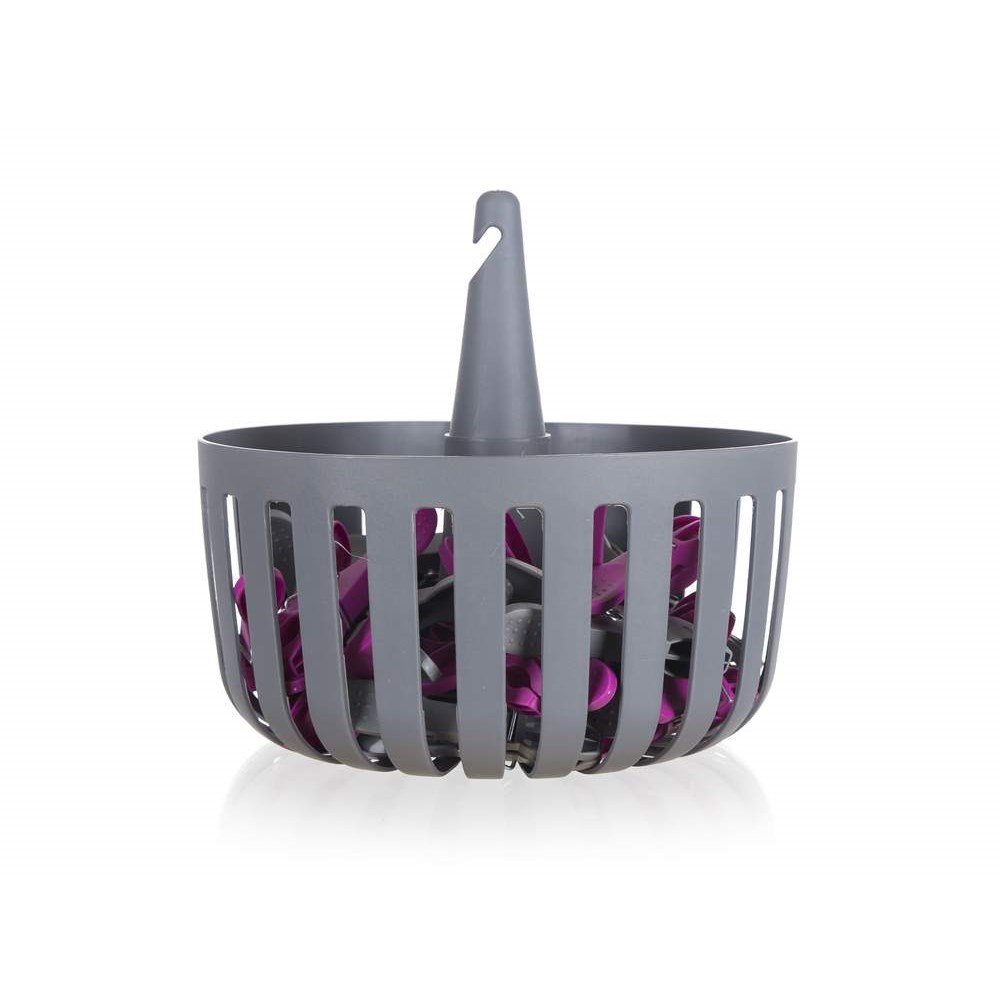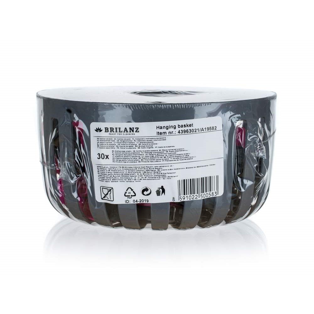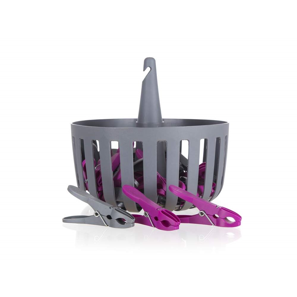 Pořiďte si domů plastový antracitový košík značky Brilanz o průměru 18 cm. Snadno jej zavěsíte na prádelní šňůru, budete tak k němu mít lepší přístup. Součástí balení je rovněž 30 plastových kolíků na prádlo v barevném mixu.