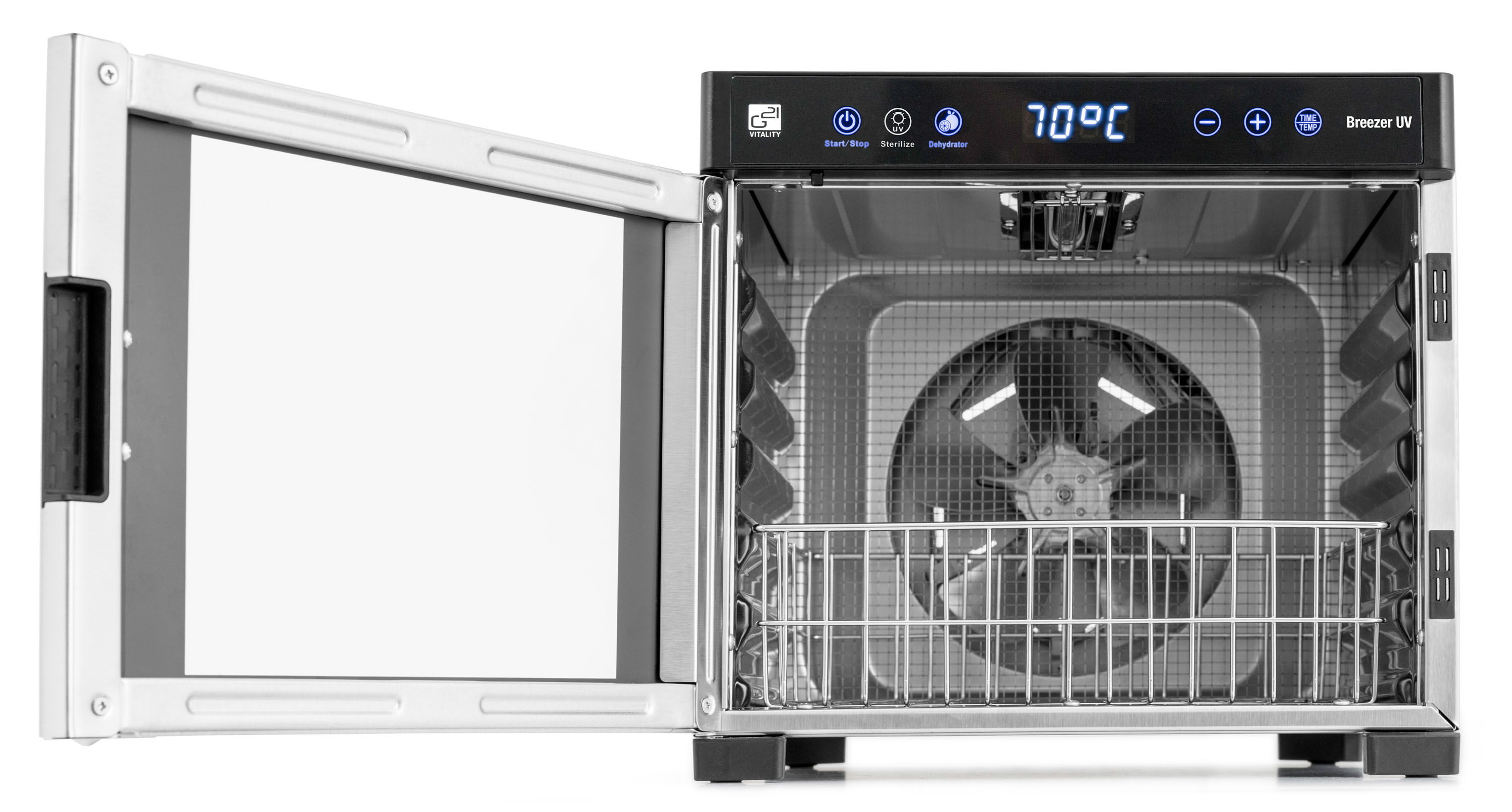 Vnitřní nerezový koš vám umožní využití sušičky na maximum. Do koše můžete vkládat předměty na dezinfekci UV světlem, využijete jej i pro uložení skleniček při přípravě domácího jogurtu v sušičce potravin, sušení pečiva na strouhanku a podobně.