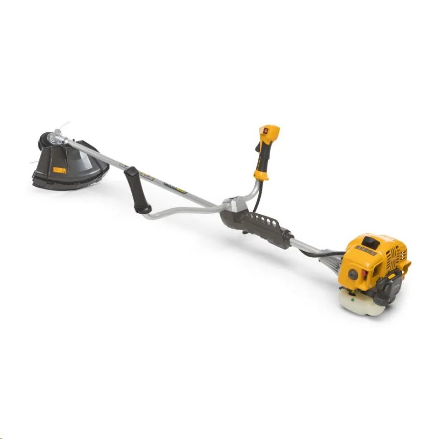 Zesílená konstrukce hřídele je odolnější a lépe absorbuje vibrace, takže s křovinořezem vydržíte pracovat déle. Rukojeti ve tvaru řídítek jsou opatřeny měkčenou vrstvou pro pohodlnější stisk. Ovládací rukojeť je vybavena vypínačem a klasickým tlačítkem pro ovládání otáček hlavice s pojistkou. Palivová nádrž křovinořezu o objemu 0,8 litru je chráněna pevným plastovým chráničem proti nárazům.