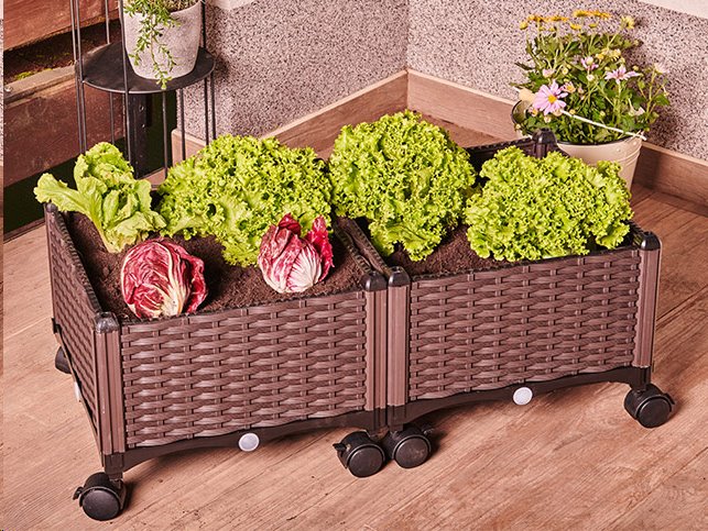 Tělo truhlíku o rozměrech 40 x 40 x 25 cm nabízí prostor pro pěstování o kapacitě 23 litrů, takže můžete pěstovat v jednom květináči i několik druhů rostlin. A pokud by vám jeden truhlík nestačil, stačí jednoduše dokoupit druhý a postavit je na kolečkách vedle sebe nebo kolečka sundat a truhlíky postavit třeba rovnou na zem na zahradě.