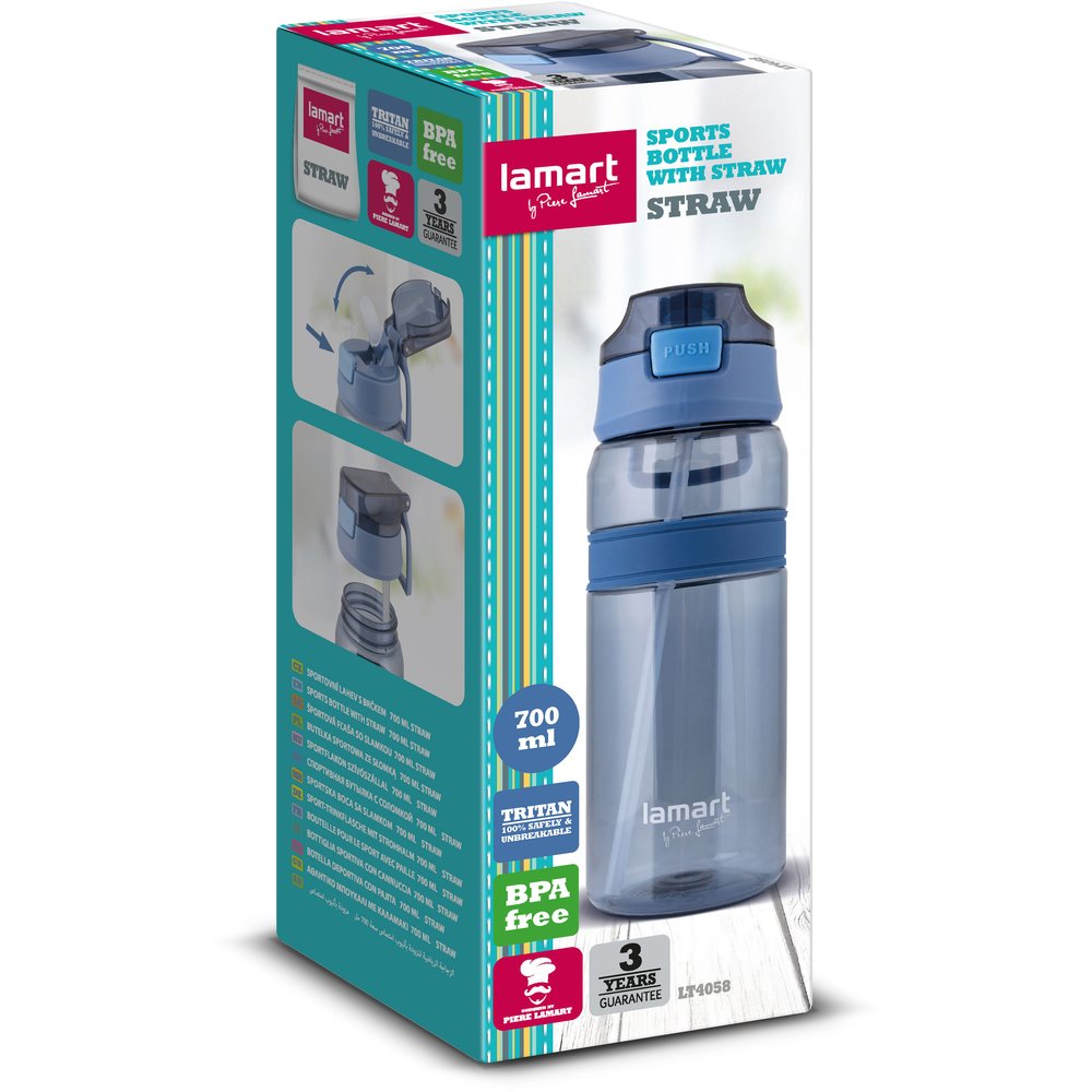 Vybavte se sportovní lahví Lamart LT4058 s brčkem a dodržujte během vašich aktivit pitný režim. Vezmete si ji s sebou kamkoliv. Flaška je totiž velmi lehká a vhodná pro venkovní použití. Dobře se drží díky silikonovému protiskluzovému středu.