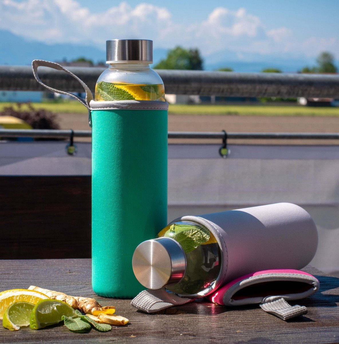 Láhev značky Steuber vás zaujme svým elegantním designem. Průhledné provedení z borosilikátového skla vám umožní sledovat množství tekutiny v nádobě. Víko z nerezové oceli výborně těsní a bezpečně uzavírá láhev. Každá láhev se dodává s ochranným krytem v sytě růžové barvě. Obal má praktické poutko pro snadné držení a přenášení láhve. Jistě také oceníte široké hrdlo pro rychlejší plnění. Maximální kapacita je 500 ml. Velkou výhodou je možnost mytí láhve v myčce.