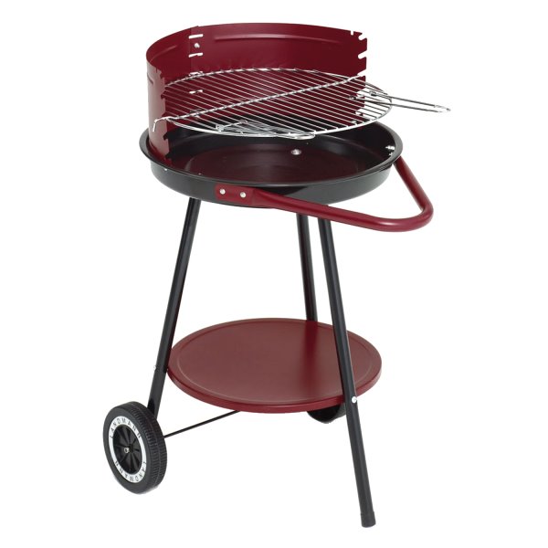 Mobilní gril vyrobený z tepelně odolného ocelového plechu disponuje robustními kolečky, které zajistí výbornou stabilitu a snadnou manipulaci. Je vybaven smaltovanou miskou a grilovacím roštem o průměru 45 cm, který postačí k přípravě jídla pro 6 osob. Zahrnuje také větrolam, který umožňuje nastavení roštu do požadované výšky.