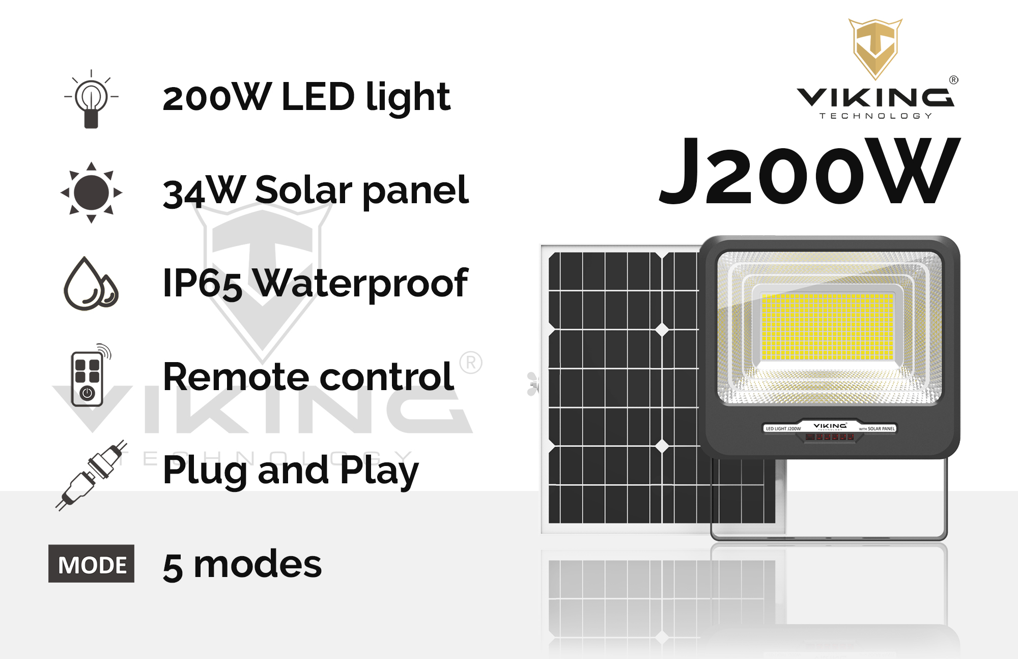 Solární LED světlo J200W je ideální k osvětlení venkovních