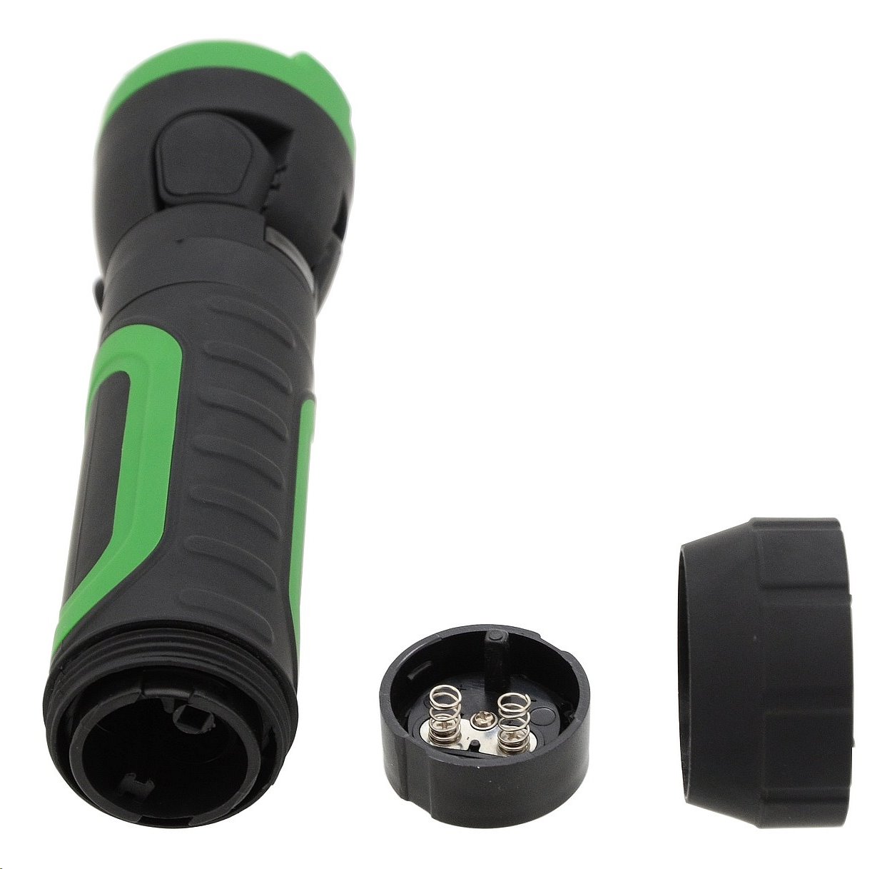 Svítilna je precizně vyrobená z odolného pogumovaného plastu, který skvěle padne do ruky. Svítilna je odolná proti stříkající vodě.