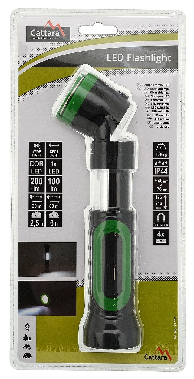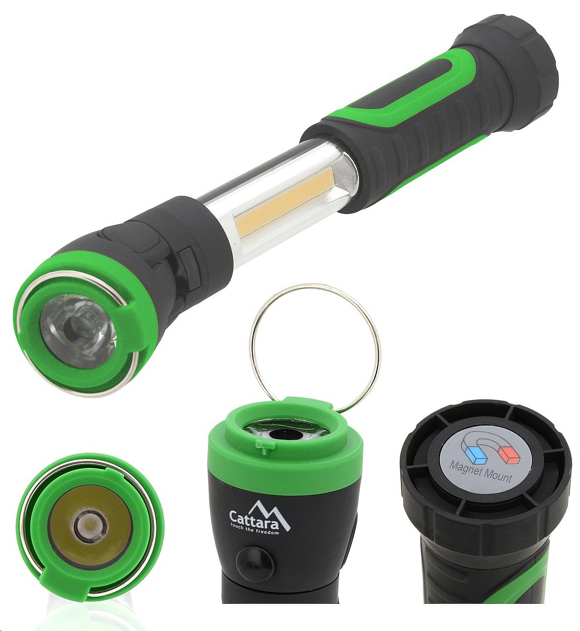 Kempingová LED svítilna Cattara CAMPING s vysouvacím tělem je vybavena vysoce svítivou bodovou LED o světelném toku 100 lm, která v kombinaci se skleněnou čočkou vydává vysoký optický výkon. Svítilna je dále opatřena bočním osvětlením, výkonnou COB LED o světelném toku 200 lm, které je ukryto ve vysouvacím těle.