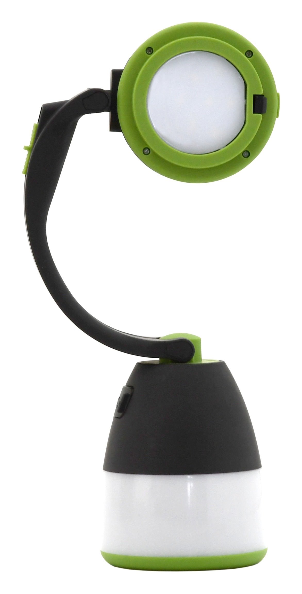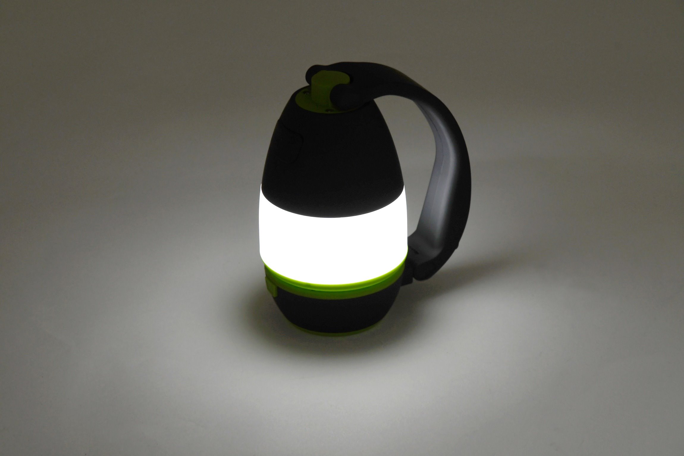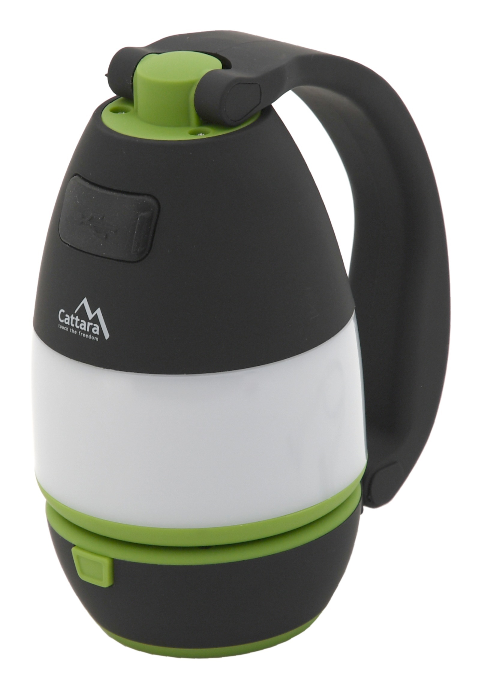 Na rukojeti se navíc nachází 4polohový vypínač. Vyberete si mezi slabým a silným osvětlením střední části lampičky. Přední poloha rozsvítí čelní LED a vytvoří baterku. Zároveň svítilnu využijete i jako powerbanku. Pod gumovou krytkou naleznete USB zásuvku, ke které můžete připojit přiložený napájecí kabel s microUSB, USB-C a IPhone konektorem.