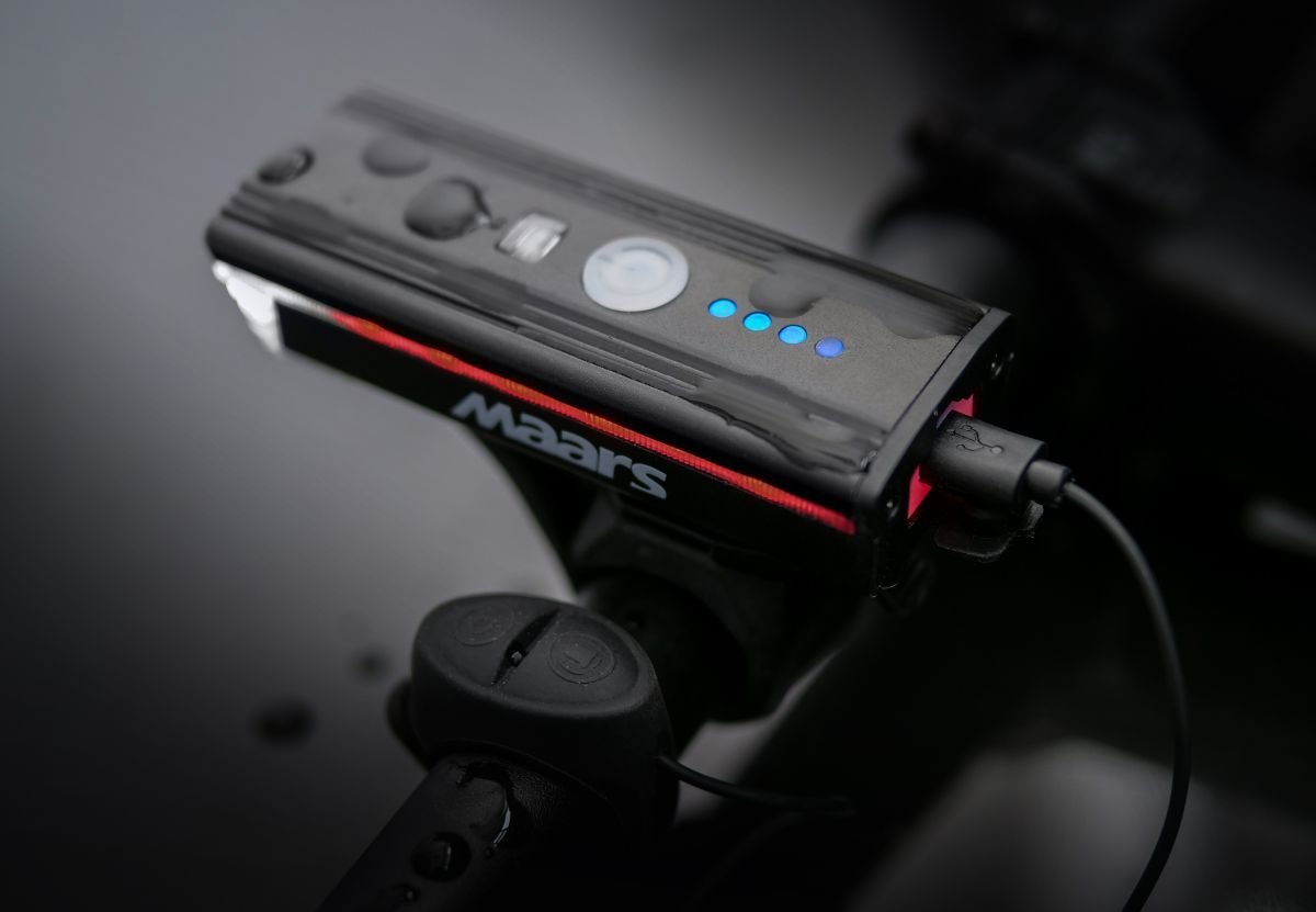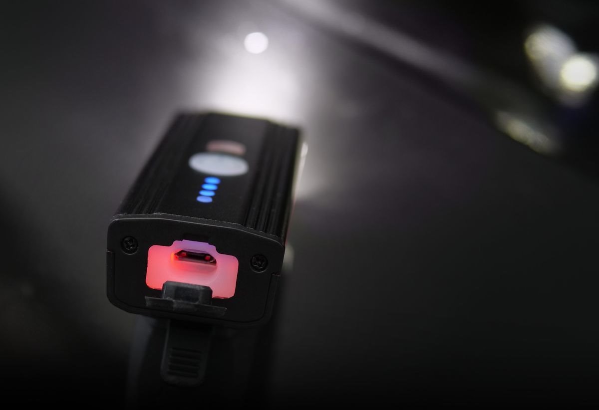 Světlo vám vydrží při aktivním používání svítit až 4 hodiny. Záleží na tom, jak náročný mód nastavíte. MAARS MS 501 napájí baterie s dlouhou životností 1 200 mAh. Vnitřní akumulátor nabijete přiloženým micro USB konektorem. Na stav nabití vás upozorňují LED diody nacházející se na světle.