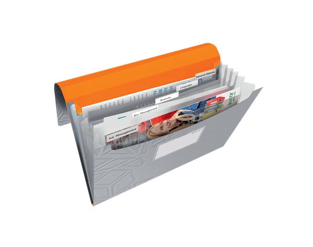 Aktovka s přihrádkami, omyvatelná, v kontrastních výrazných barvách