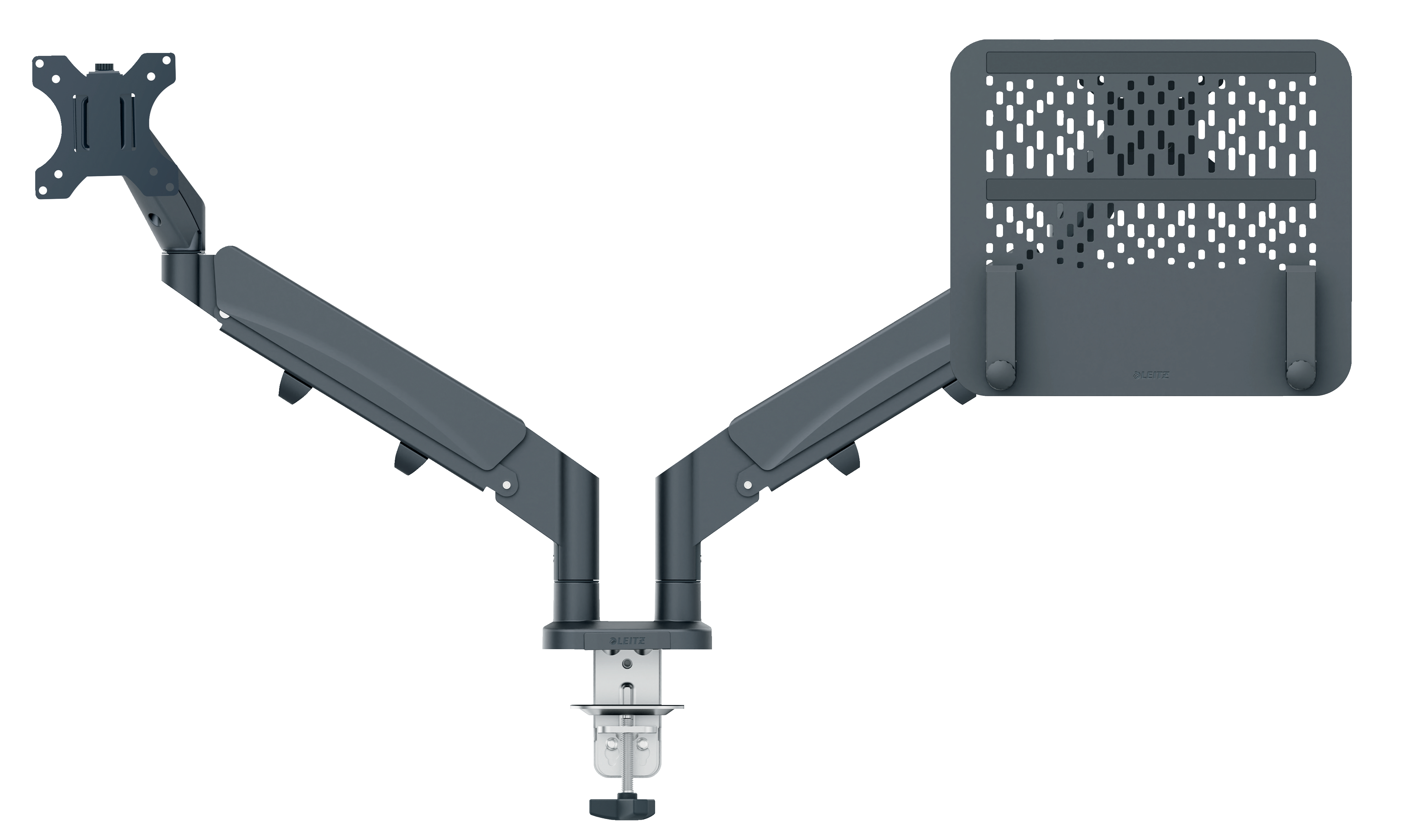 "Ergonomické duální rameno pro monitor a notebook, které při