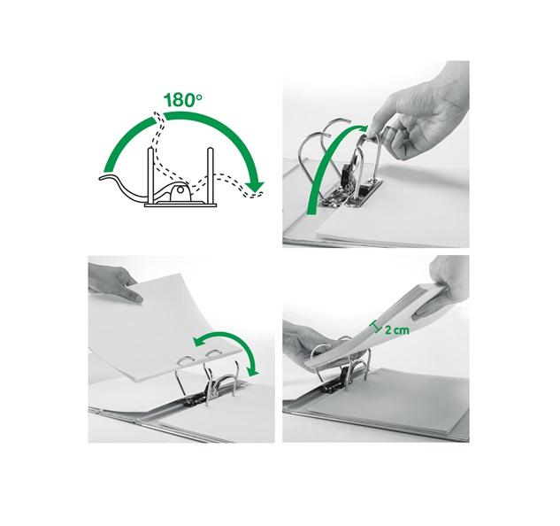 umožňuje o 50 % širší otevření a o 20 % rychlejší práci s pořadačem