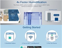 Zvlhčovač vzduchu Levoit Classic300S Smart lze ovládat přímo na přehledném podsvíceném LED displeji nebo také přes aplikaci na chytrých zařízeních Apple nebo Android. Nebo si ho můžete dokonce připojit do svého Smart Home a ovládat hlasem přes Google Assistant nebo Amazon Alexa. Senzor vlhkosti zobrazuje vlhkost v reálném čase a v automatickém režimu tak okamžitě reaguje na změny vlhkosti. Vždy by se mělo jednat o rozmezí mezi 40 % až 60 %. Přes aplikaci si můžete informace kontrolovat nebo si své režimy plánovat.