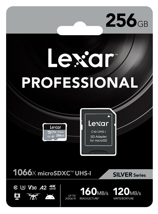 Karta Lexar® Professional 1066x microSD™ UHS-I řady SILVER je určena pro akční kamery, drony nebo chytré telefony se systémem Android™.