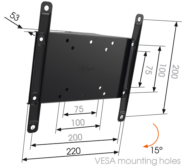 Univerzální držák na malá a střední LCD Rozvržením montážních otvorů 100x100, 200x100 a 200x200 Náklon 0, 5, 10 a 15 stupňů Nosnost 50 kg Vyrobeno z masivní oceli Montážní materiál přiložen