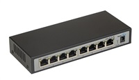 Porty 1-7 podporují funkci PoE-In, port 8 podoruje funkci PoE-Out. Switch akceptuje na vstupních PoE portech pouze pasivní 24 - 48V PoE. Výstupní napětí je stejné jako vstupní. Na přední straně je navíc vyveden i výstup 5 V/12 V DC přes standardní DC konektor 5,5/2,1 mm s možnosti volby napětí pomocí přepínače na zadní straně. Do PoE-In portů je možné připojit různá vstupní napětí, na výstupu bude přítomno vždy nejvyšší z nich.